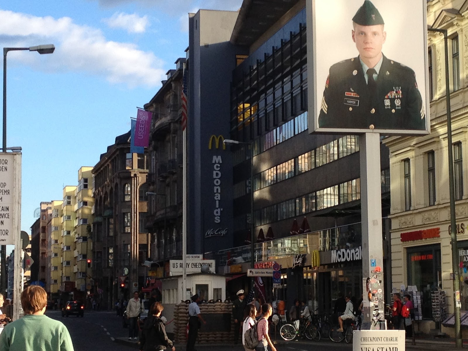 Müzeler adasından çıktıktan sonra Museumsinsel durağından metroya binip Stadtmitte durağında inip Checkpoint Charlie noktasına geldik.
