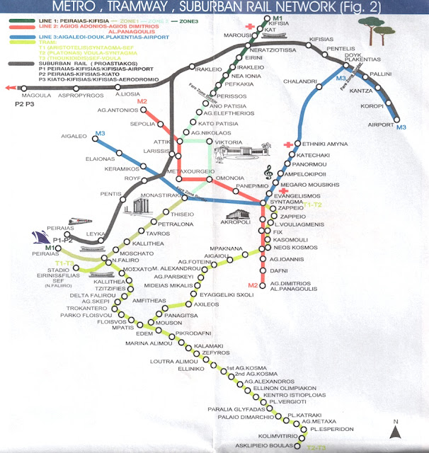 Athens transportation system of buses with three metro and tram line consists of three units.