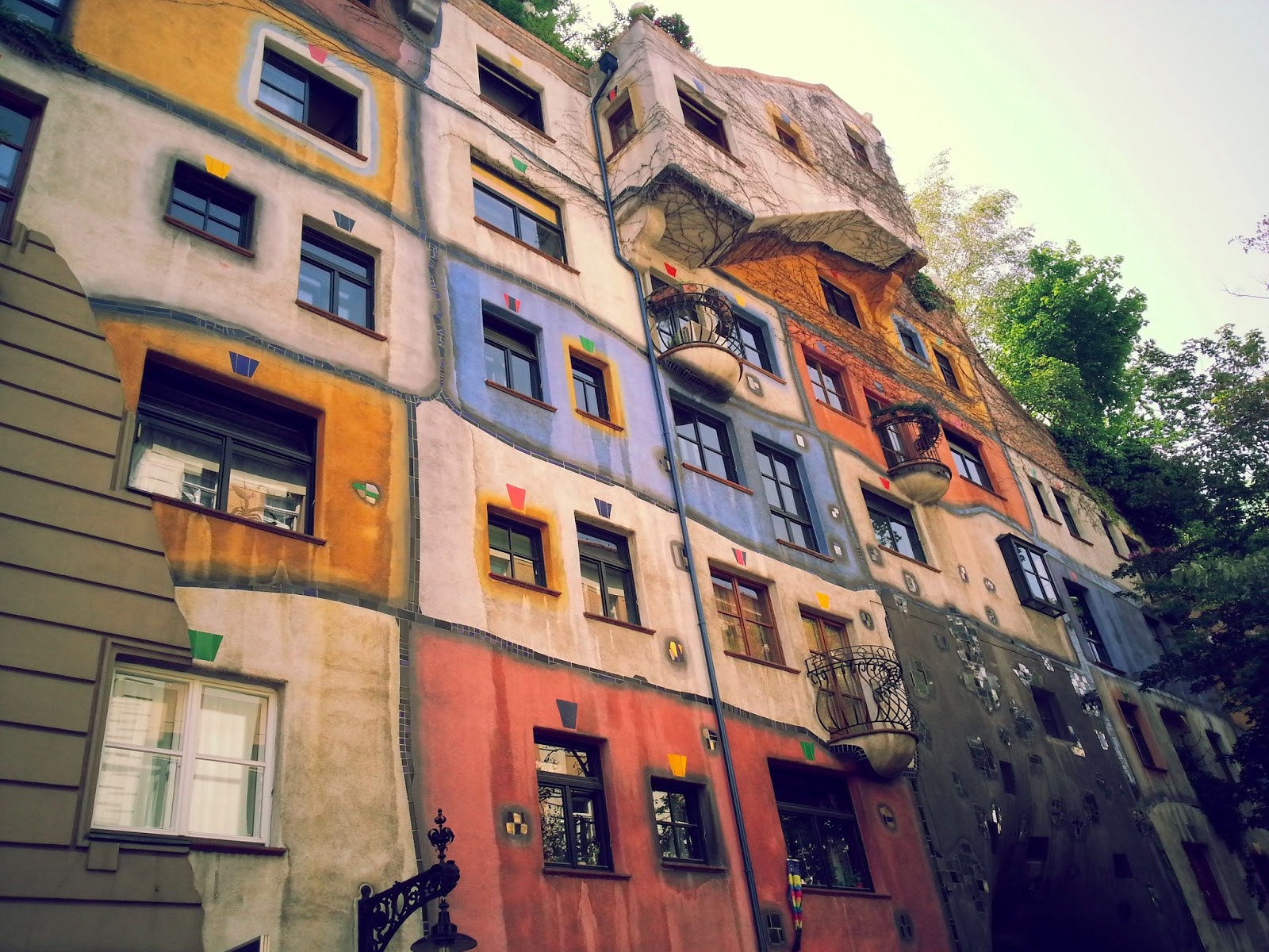 Günümüze ilk olarak şehir merkezine yakın bir yerde olan Hunterwasser Evlerine göz atarak başlamaya karar verdik. 1 numaralı tamway ile Hetzgasse durağında inip kalabalığı takip ettiğimizde Avusturya’nın Gaudisi olan ünlü mimar Hunterwasser’in yarattığı evleri gördük. Burası aslında bir nevi sosyal konut. Nispeten maddi durumu daha düşük seviyede olanlar için tasarlanmış ancak ünlü mimar evleri bu şekilde tasarlayarak ilgi çekmeyi başarmış.