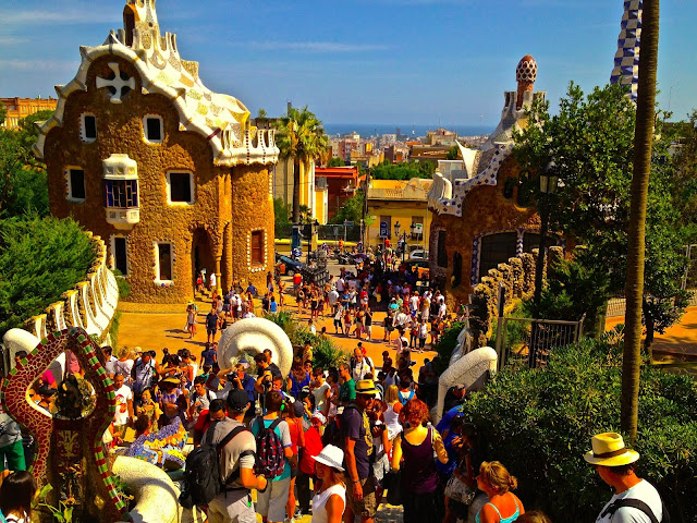 Parka ilk geldiğinizde sanki çikolatan yapılmış evler şirin bacaları ile sizi karşılarken merdivenlerde gördüğünüz seramik iguana size selam veriyor. Merdivende bulunan ve herkesin fotoğraf çektirmek için sıraya girdiği iguananın aslında bir işlevi var. Parkın altındaki su sistemi aşırı yağışlar sebebi ile dolduğunda bu iguanın ağzından su çıkıyor. Böylece görevliler depoyu boşaltmak gerektiğini anlıyorlar. İşte zaten Gaudi bu. Herkesin hayranlıkla baktığı her objenin bir sebebi bir gerekliliği var.