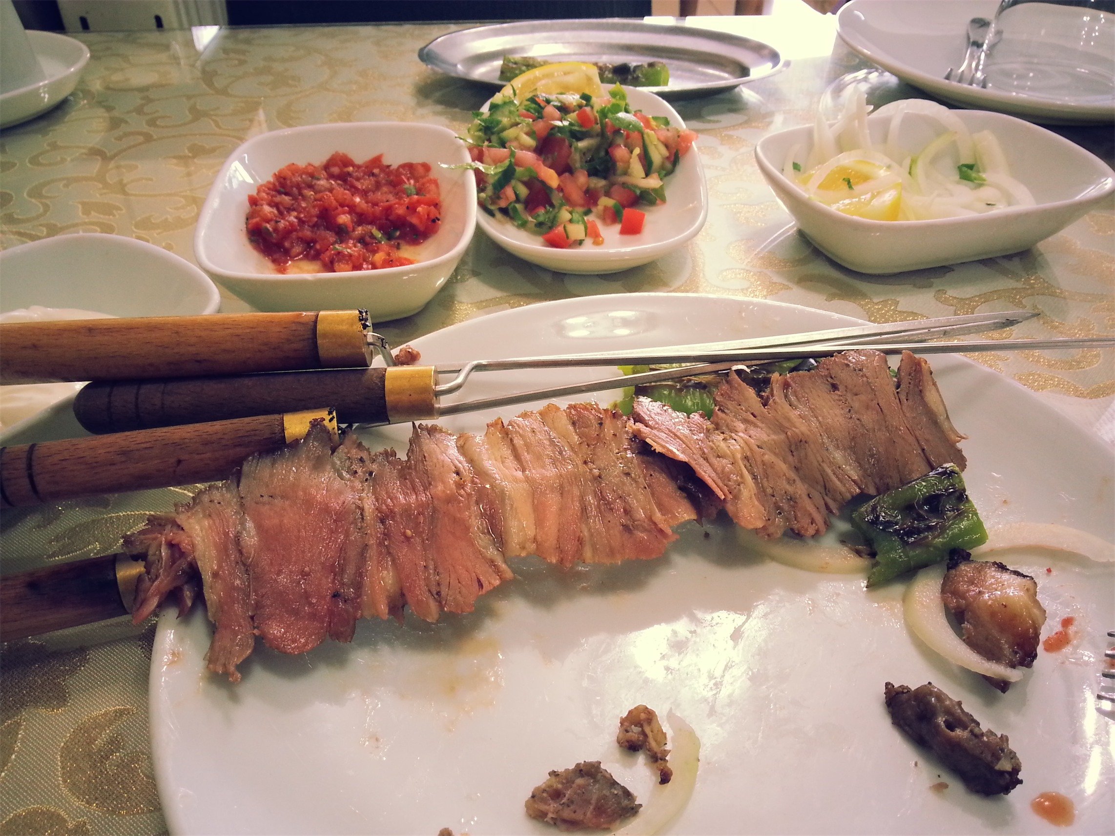 Erzurum’a gelmeden önce Çağ Kebabı “Yatık Döner” olarak bilirdim. Ama burada gerek şişe dizilimi gerekse de kullanılan et pişiriliş tarzı sebebi ile Çağ Kebabının, Yatık Döner olmadığını daha ilk günden anladım.