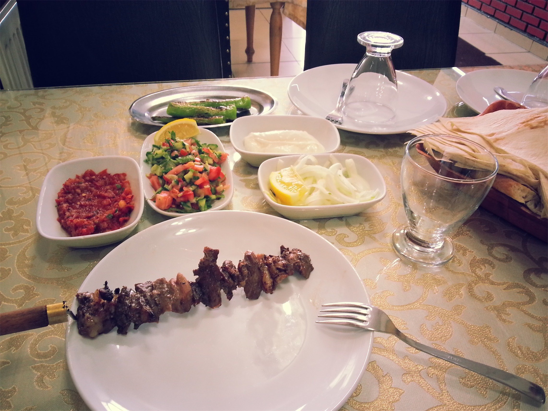 İlk olarak hemen eşlikçiler geldi, güzel bir ezme , yoğurt ve salata ve hemen ardından ilk şiş.