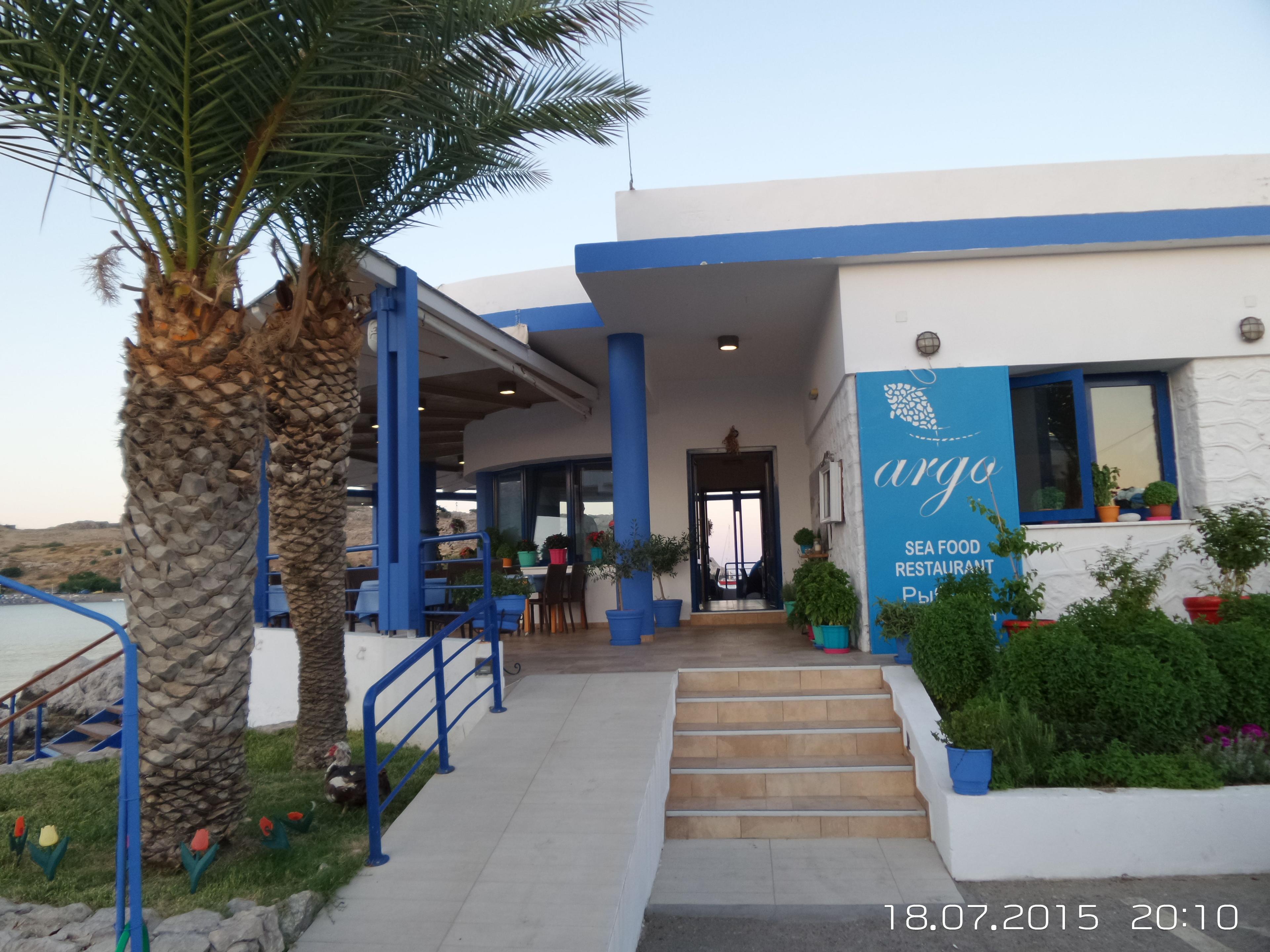 Argo Restoranı yine araştırma yaparken adada 10 gün geçiren gezgin bir ailenin blogunda yakalamıştım. Adanın güneyine doğru giderken Haraki Kasabasında, Rodos yerlilerinin gittiği bir restoran olarak anlatmıştı.