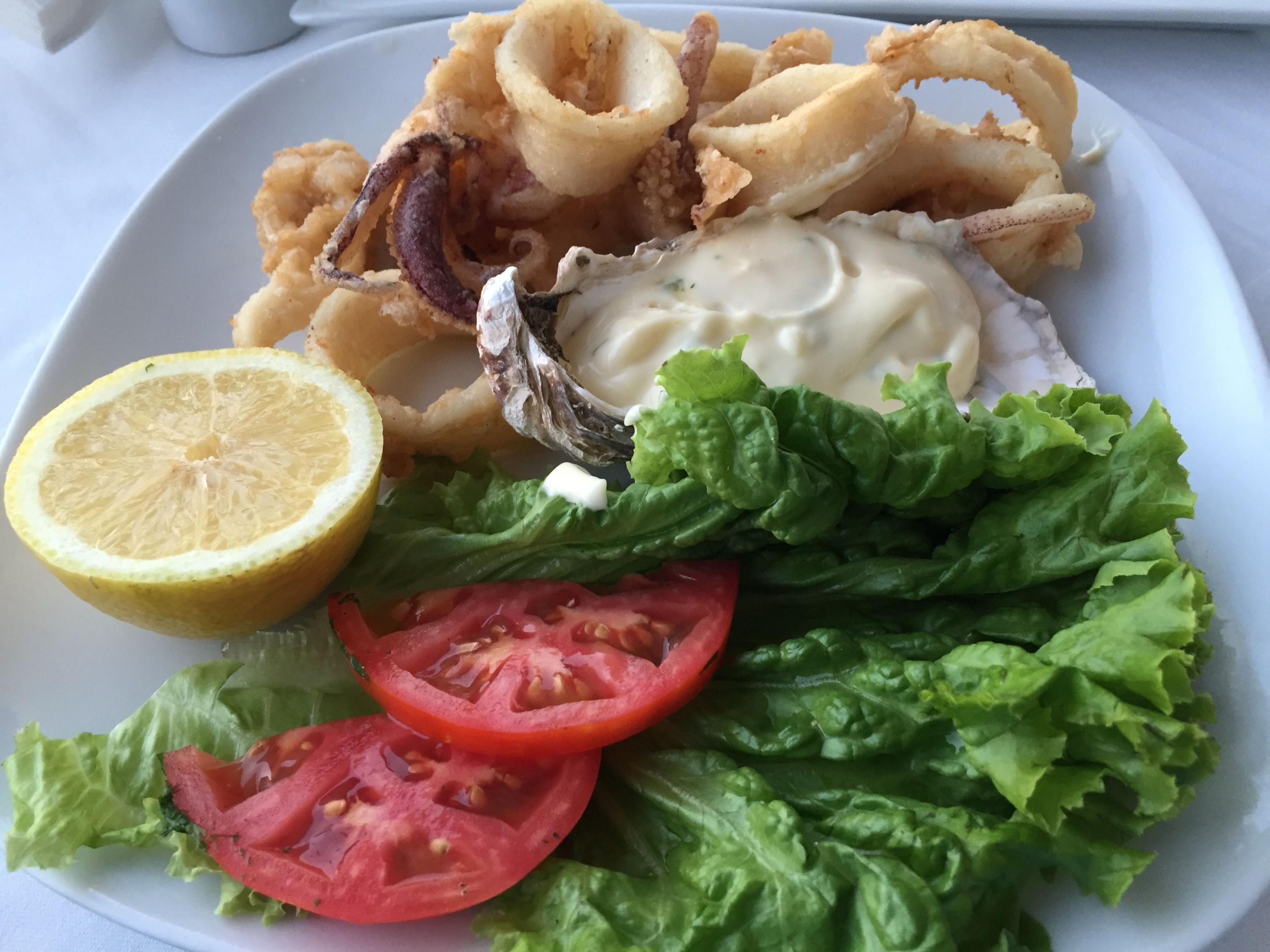 Kalamar dolma ise büyük bir kalamarın içine domates ve feta peyniri doldurulup getirilmişti. Lezzeti güzel ama bir süre sonra baydı. Yani çok lezzetli bir yemek ama bir kişi için yemek değil de ortaya alınabilecek herkesin bir parçasını yiyebileceği bir yemek olarak düşünmek lazım.
