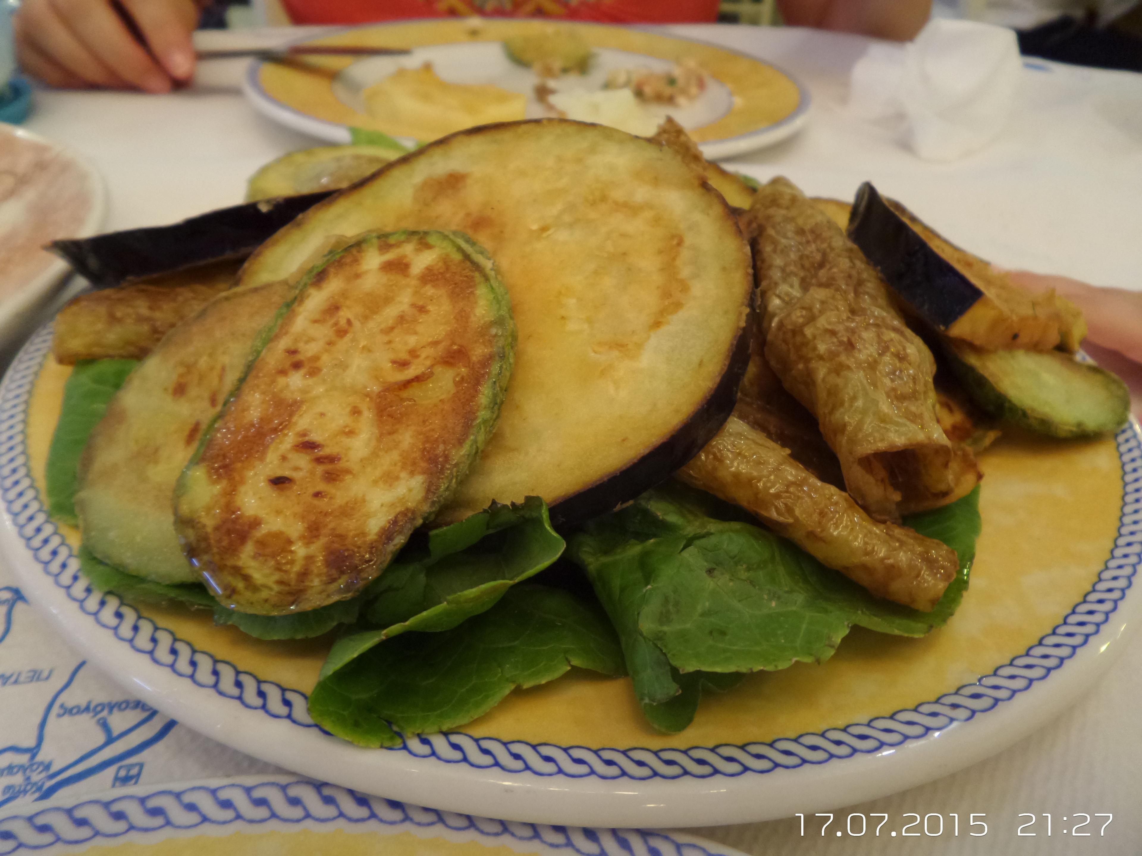 Patlıcan, Kabak, Biber kızartması istedik. Önümüze gelen içine yağ çekmemiş, hafif mısır unu ile yapılmış kocaman kocaman kesilmiş harika bir kızartma oldu. Gerçekten de tadı hala damağımda olan çok güzel bir lezzetti. Hatta Yüksel, balığı gelmiş olmasına rağmen hala kızartmanın peşinde koşuyordu.