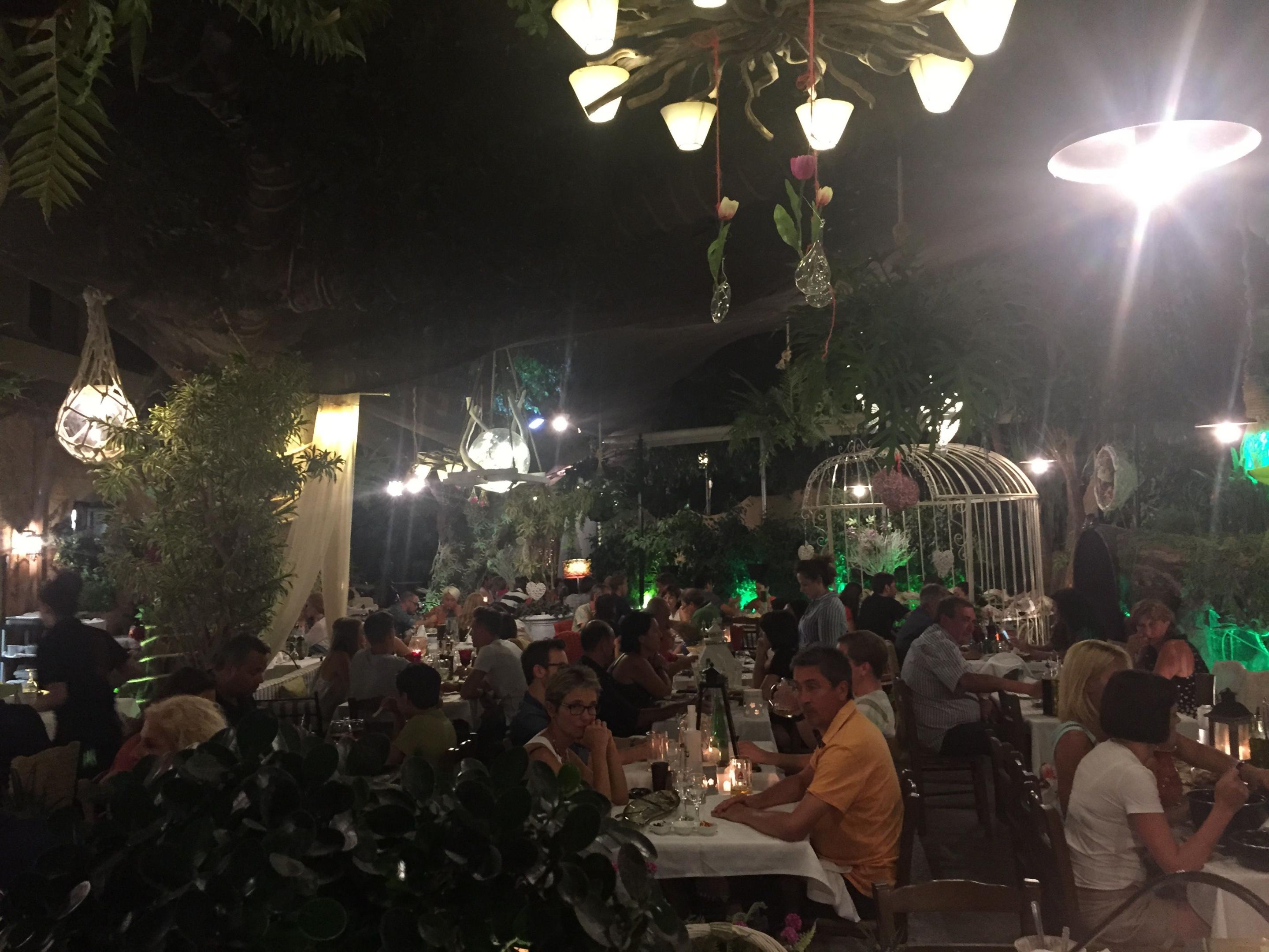 Bu dolambaçlı rotanın ardından koordinatın gösterdiği noktada çok güzel bahçesi ile sevimli bir taverna çıktı karşımıza ve ben hah şimdi bulduk diye hemen bir masaya atladım. Boş masa azdı çünkü, Sonra menüyü isteyince bir baktım ki buranın adı Nireas değil Romios'muş 🙂